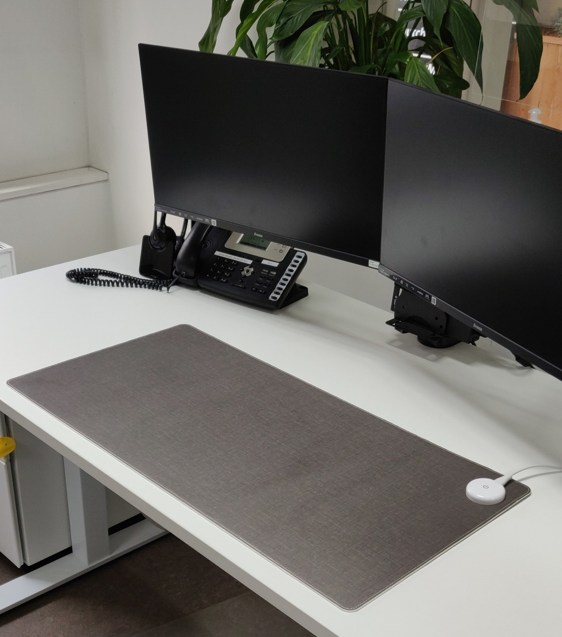 Deze nieuwe versie is voorzien van een groter verwarmd oppervlak dan de vorige versie, waardoor vrijwel het gehele oppervlak warm wordt tot aan de randen van de bureaulegger.