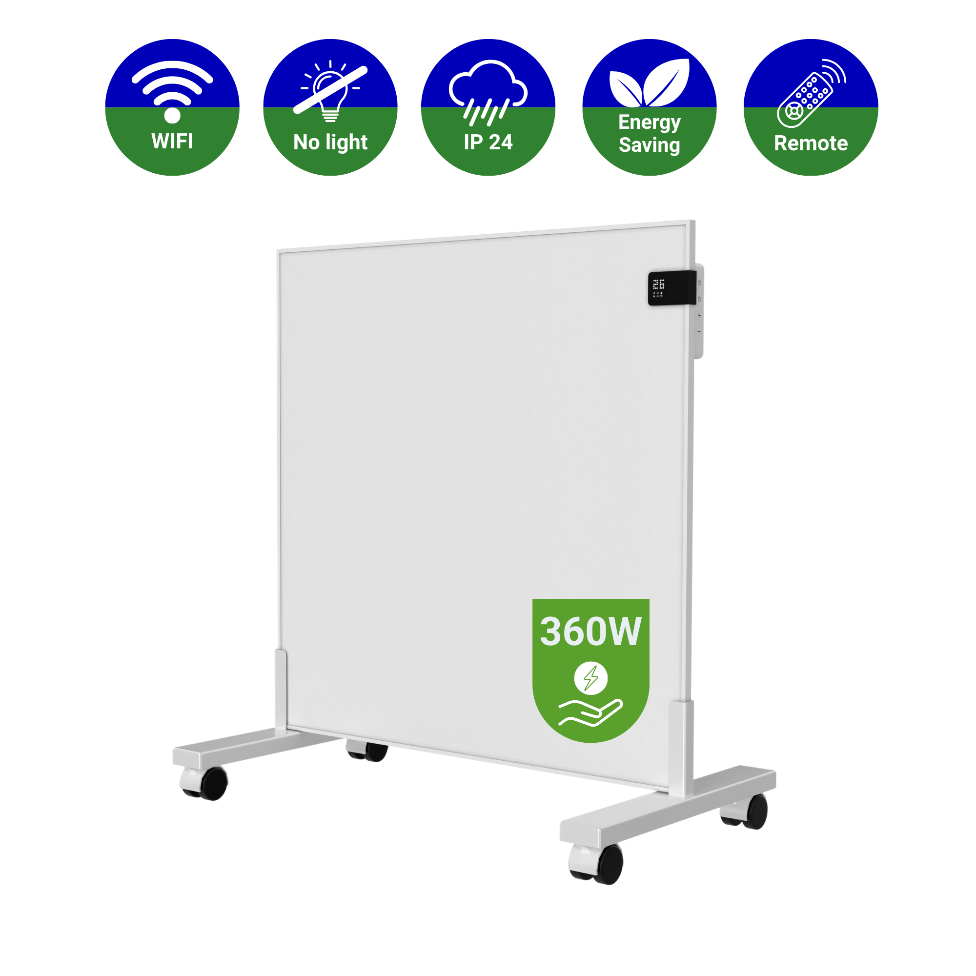 | 60 x 60 cm | 360 watt | Wand of vrijstaand | 2,4 kg |